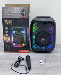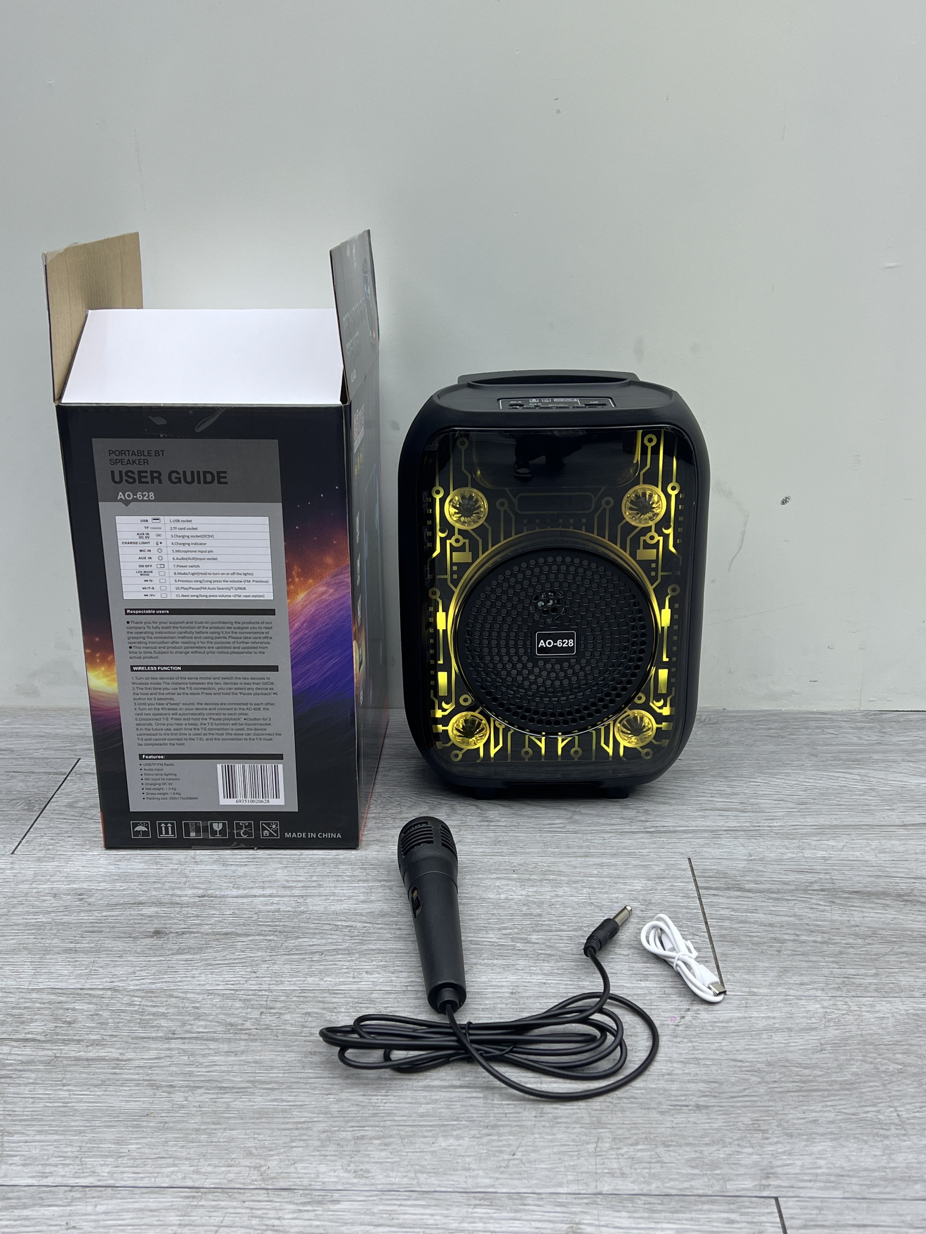 ລຳໂພງ AO-628 ລຳໂພງບລູທູດພົກພາ ມີໄຟ led ສາມາດປ່ຽນໄດ້ Mecha Light ພ້ອມໄມໂຄຣໂຟນ ມີຟັງຊັນຄົບຄັນ ໃຊ້ໄດ້ທັງຟັງເພງ ແລະ ຮ້ອງຄາລາໂອເກະ.